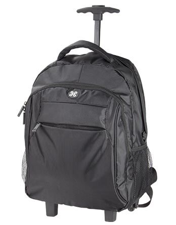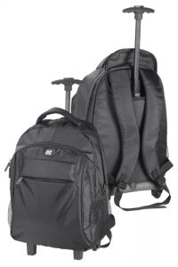 Troller, curea reglabilă, buzunare cu fermoar, compartiment căptușit pentru laptop, suport pentru pix şi telefon mobil. Material: 840D poliester/PVC, căptuşeală: 210D poliester.Dimensiuni: 310×125×440 mm